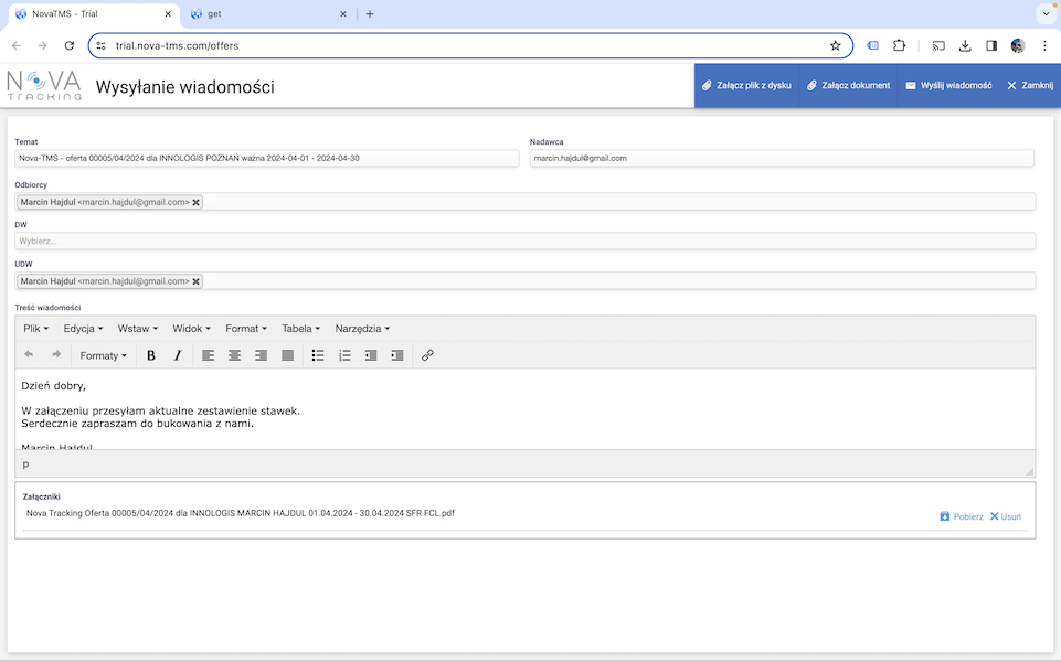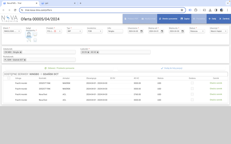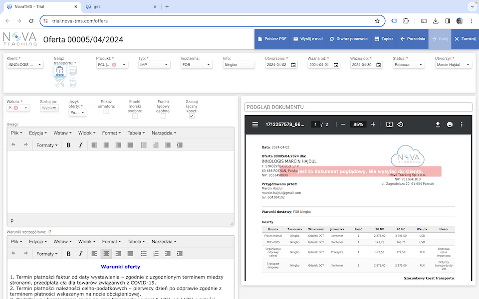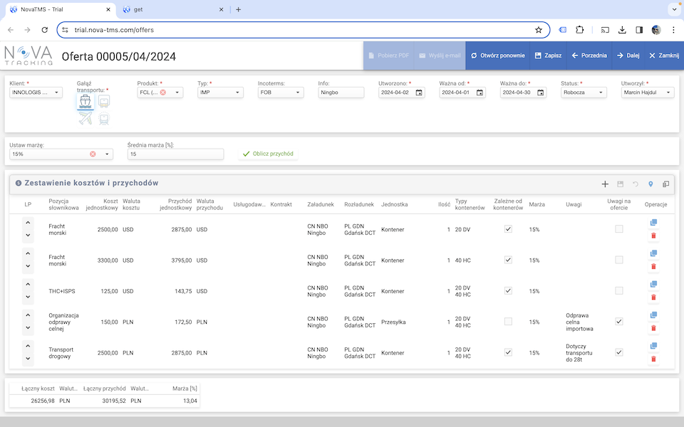 Sercem modułu CRM w NovaTMS jest nasz intuicyjny kreator ofert, który w znaczący